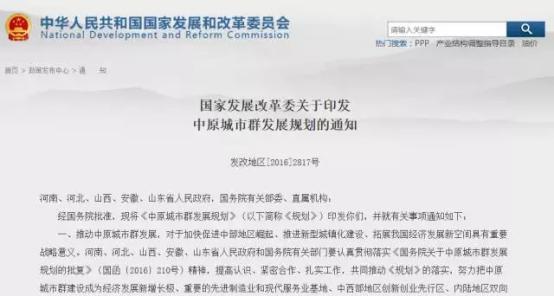2017年1月5日,國家發(fā)改委印發(fā)通知,明確了中原城市群發(fā)展規(guī)劃的重大工程項目。項目以“鐵公基”為主,在未來5年內(nèi)逐漸開工。隨著這些基建工程的鋪開,沿線城市群的城區(qū)改造、商品房建設(shè)工程,自然是水漲船高的。